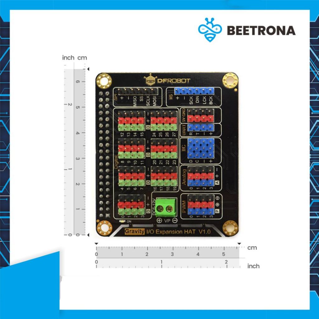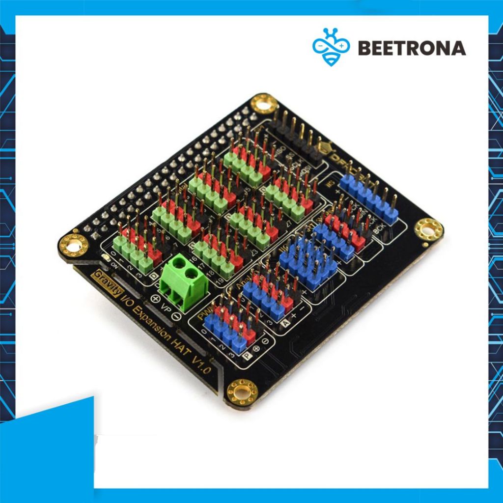 This IO Expansion HAT from DFRobot is the perfect companion for your Raspberry Pi 4B/3B+! It leads out all of the IO ports on Raspberry Pi including digital port, analog port, PWM, IIC, UART, SPI, and IIS. Besides that, the HAT is totally compatible with DFRobot Gravity Series which frees users from complicated connection work, and enables them to just concentrate on their projects building.